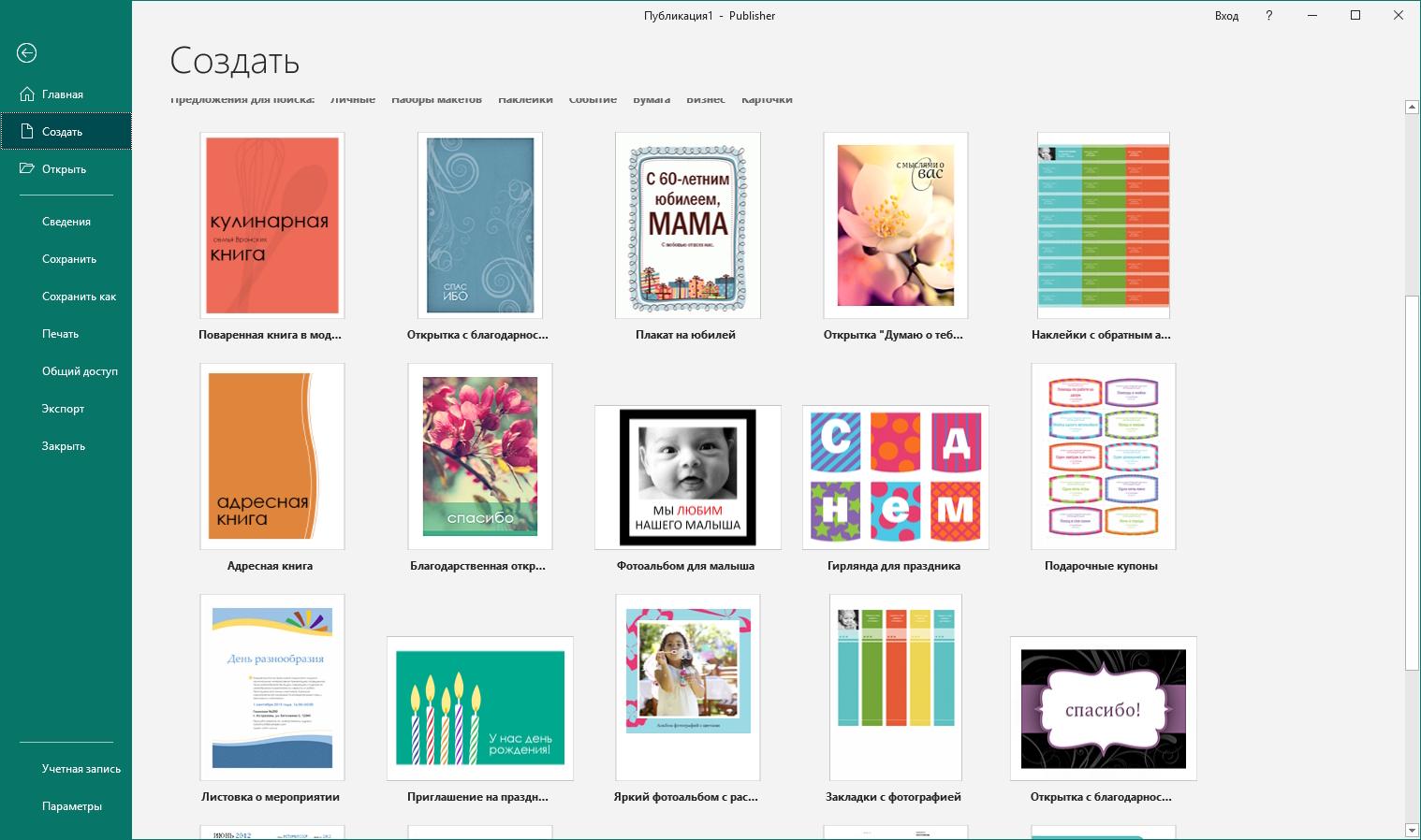 Не обязательно использовать Publisher 2019 в коммерческих целях! При наличии принтера, вы можете создавать уникальные открытки на день рождения, грамоты, объявления или те же приглашения на день рождения, свадьбу и другие мероприятия.