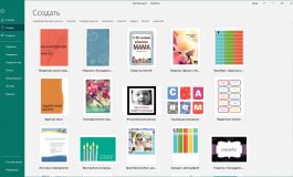 После запуска приложения, Вас встретит стартовое окно, в котором можно создать новый документ. Из этого же окна вам открывается доступ к тысячам готовых работ, которые доступны каждому пользователю совершенно бесплатно. Для работы с коллекцией готовых макетов потребуется подключение к интернету, т.к. загрузка работ происходит с официальных серверов компании Microsoft.